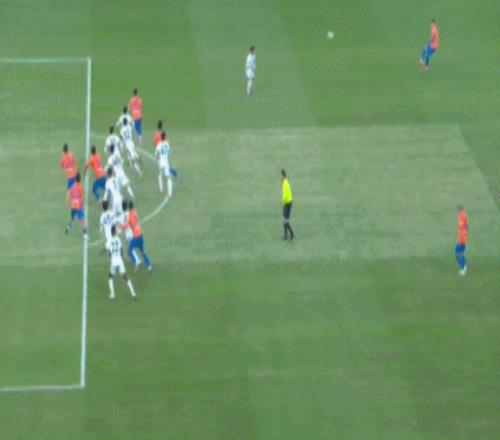 第76分钟,克雷桑主罚右侧任意球,卡扎伊什维利胸停球后扫射破门,3比1!